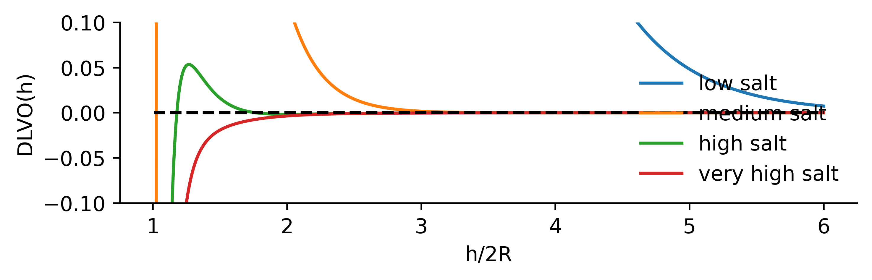The sum of the two gives rise to the DLVO (Derjaguin–Landau–Verwey–Overbeek) interaction which is an elementary model for colloid stability and aggregation.