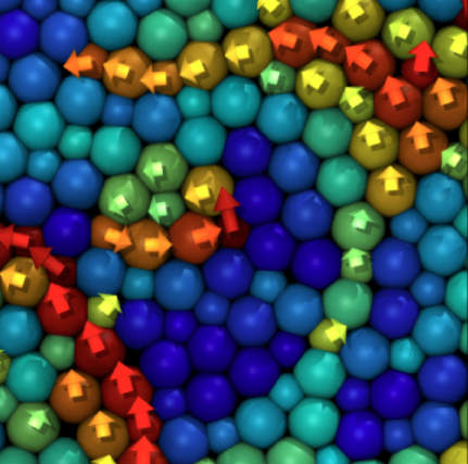 Time evolution of the magnitude of the displacement field in a model of glass governed by dynamical facilitation from Hasym and Mandadapu PNAS (2024):