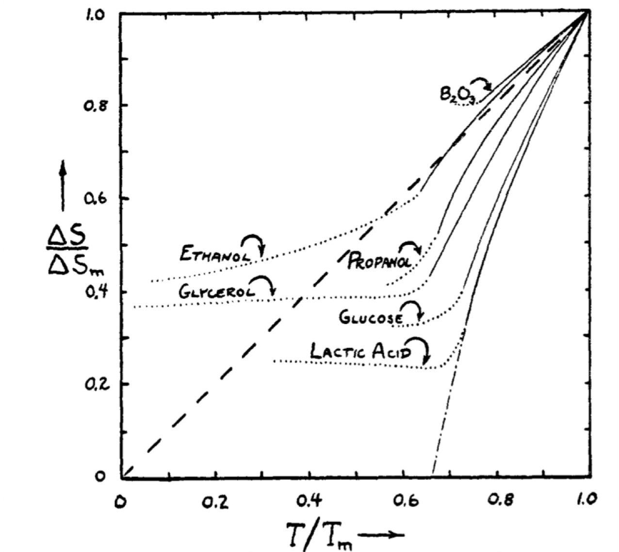 […] Perhaps in some instances a thermodynamic “freezing-in” of degrees of freedom does take place as a desperate result of the liquid’s excessive generosity with its limited supply of entropy and energy as its temperature is lowered below the melting point. This would imply the existence of some kind of state of high order for the liquid at low temperature which differs from the normal crystalline state. A plausible structure for such a state seems, however, difficult to conceive, and we believe that the paradox is better resolved in another way […] (W. Kauzmann, Chem. Rev. 43, 219 (1948)).