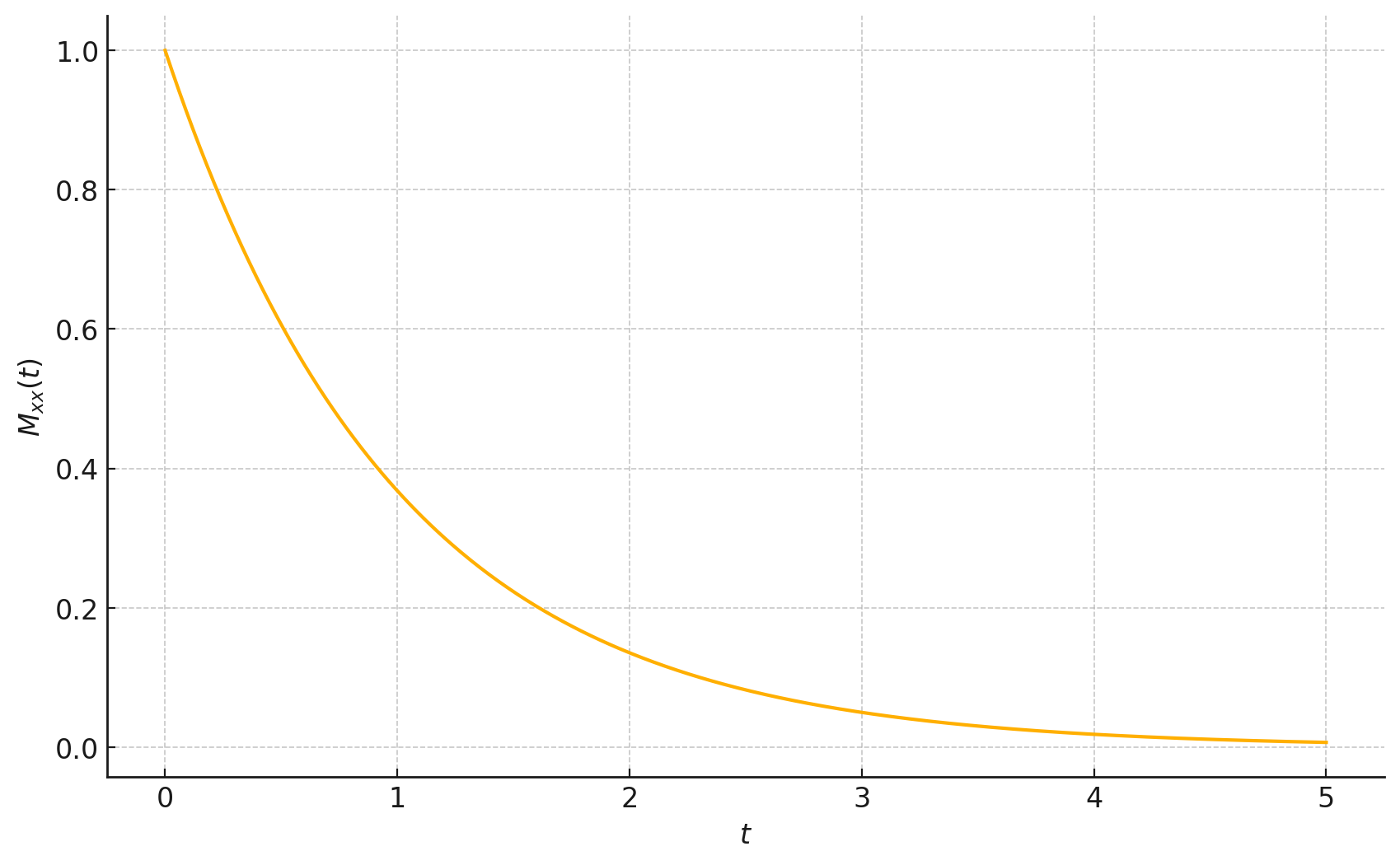 We typically expect \(M_{xx}(t)\) to decay exponentially over a characteristic correlation time \(t_c\):
