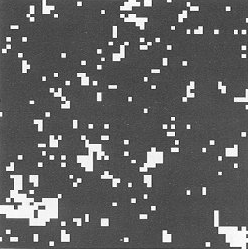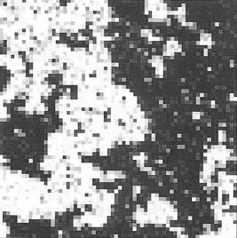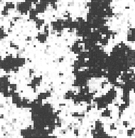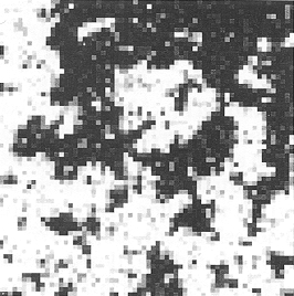 The results of coarse-graining configurations typical of three different temperatures are shown in Figure 7.1 and Figure 7.2. Two auxiliary operations are implicit in these results. The first operation is a length scaling: the lattice spacing on each blocked lattice has been scaled to the same size as that of the original lattice, making possible the display of correspondingly larger portions of the physical system. The second operation is a variable scaling: loosely speaking, we have adjusted the scale (‘contrast’) of the block variable so as to match the spectrum of block variable values to the spectrum of shades at our disposal.