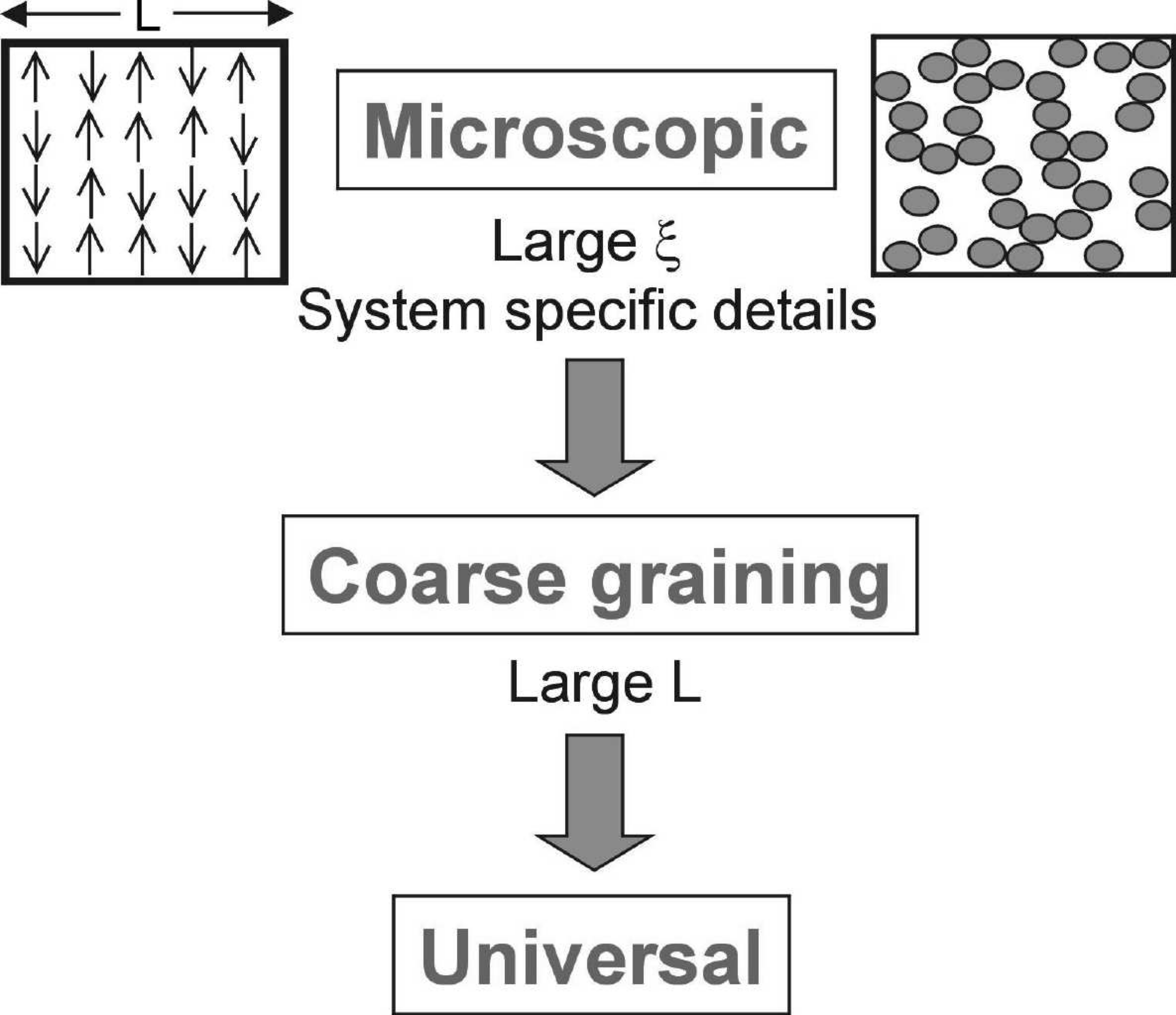 - Coarse-graining reveals that microscopically different systems can exhibit identical critical behavior when observed at large scales.