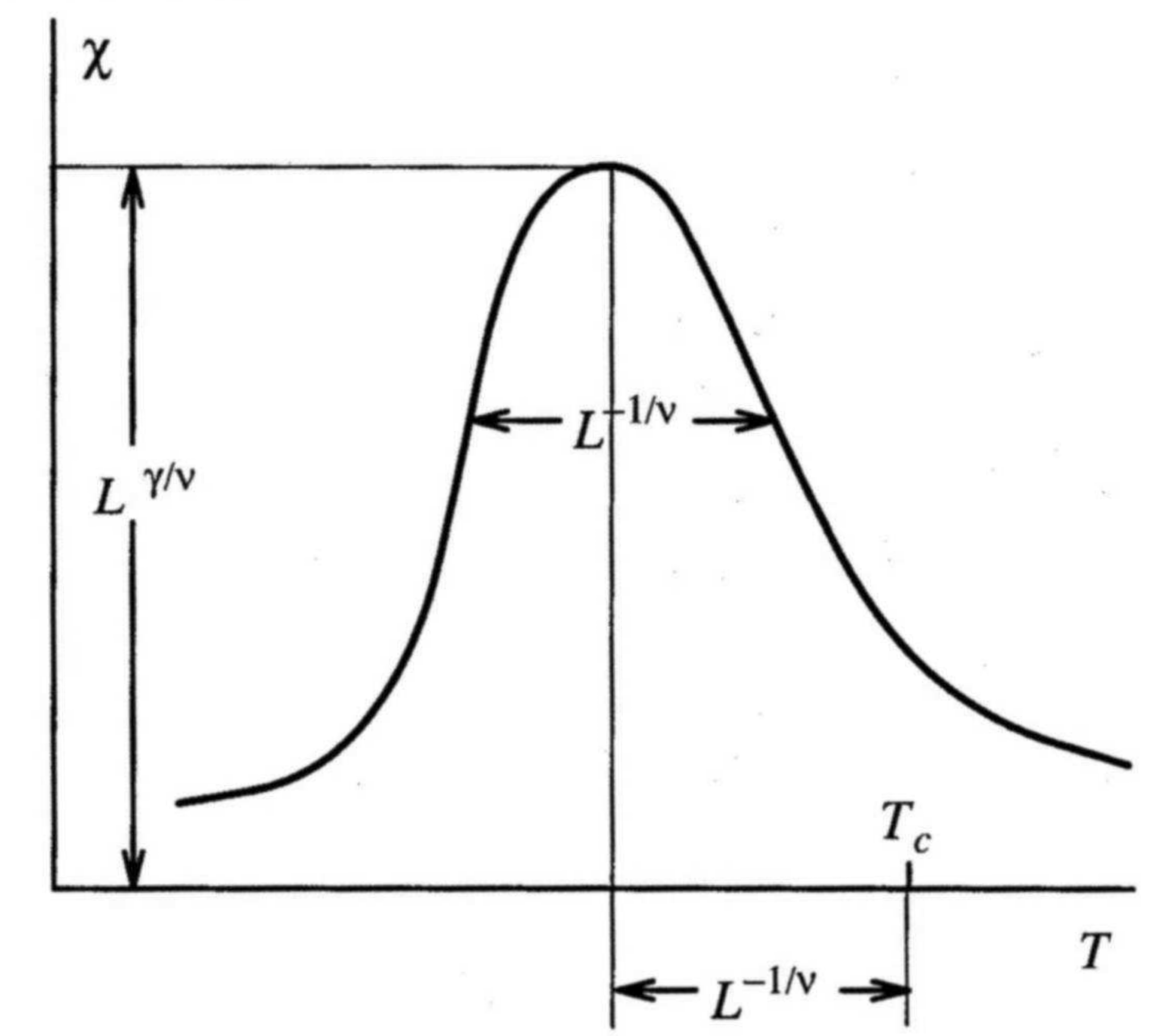 In seeking to employ simulation to obtain estimates of bulk critical point properties (such as the location of a critical point and the values of its associated exponents), one is immediately confronted with a difficulty. The problem is that simulations are necessarily restricted to dealing with systems of finite-size and cannot therefore accommodate the truly long ranged fluctuations that characterize the near-critical regime. As a consequence, the critical singularities in \(C_v\), order parameter, etc. appear rounded and shifted in a simulation study. Figure 6.2 shows a schematic example for the susceptibility of a magnet.