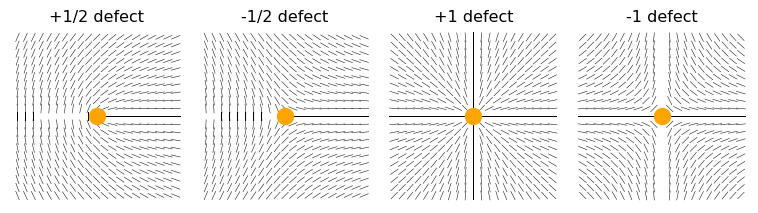 titles = ["+1/2 defect", "-1/2 defect", "+1 defect", "-1 defect"]